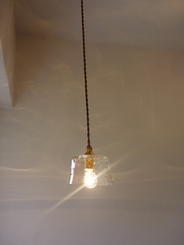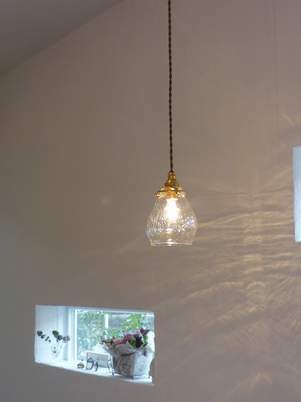 ガラスの微妙なわん曲やひび割れが、珪藻土の壁に何とも言えない模様と雰囲気を醸し出してくれます。」