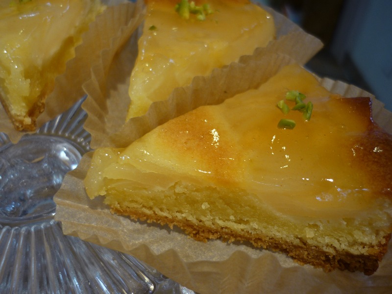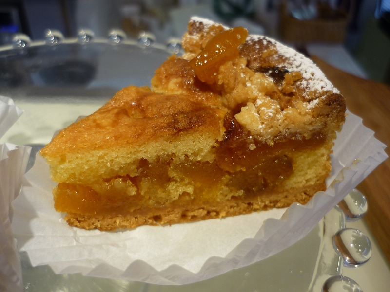 オレンジのお酒とあんずのお酒とともにコンポートしたドライあんずを一緒に焼きこんだタルト