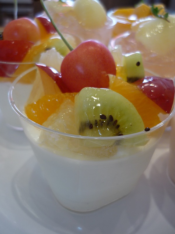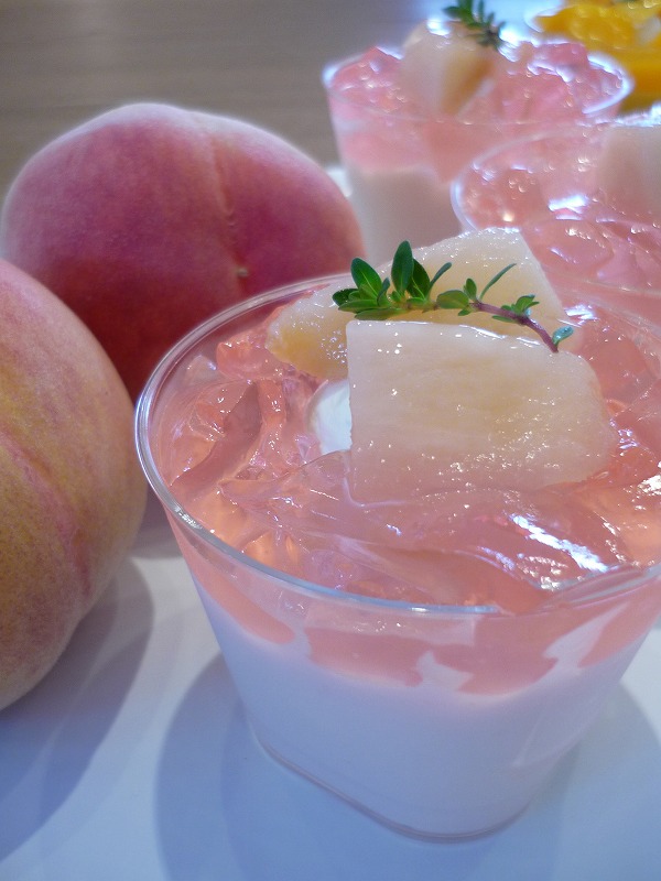 左よりパンナコッタ、ペシェ(桃のデザート)、プロバンス(アプリコットの甘酸っぱいムース)