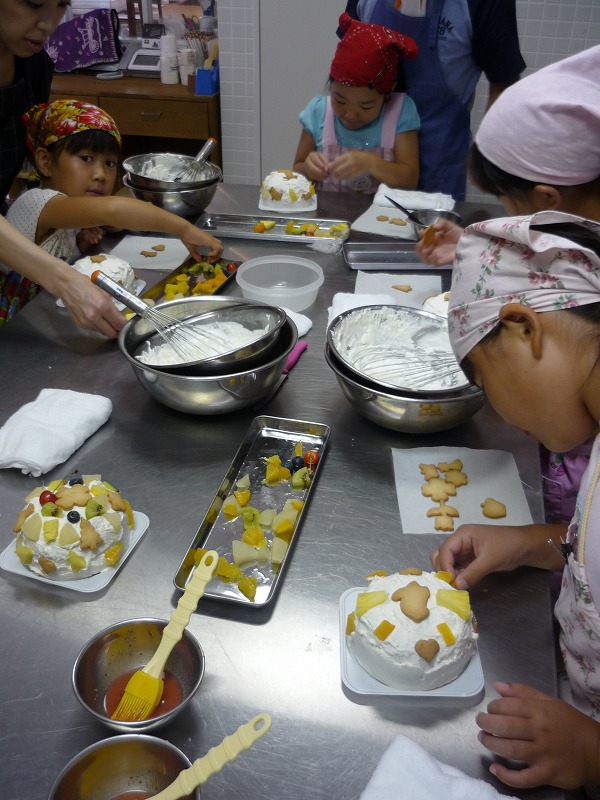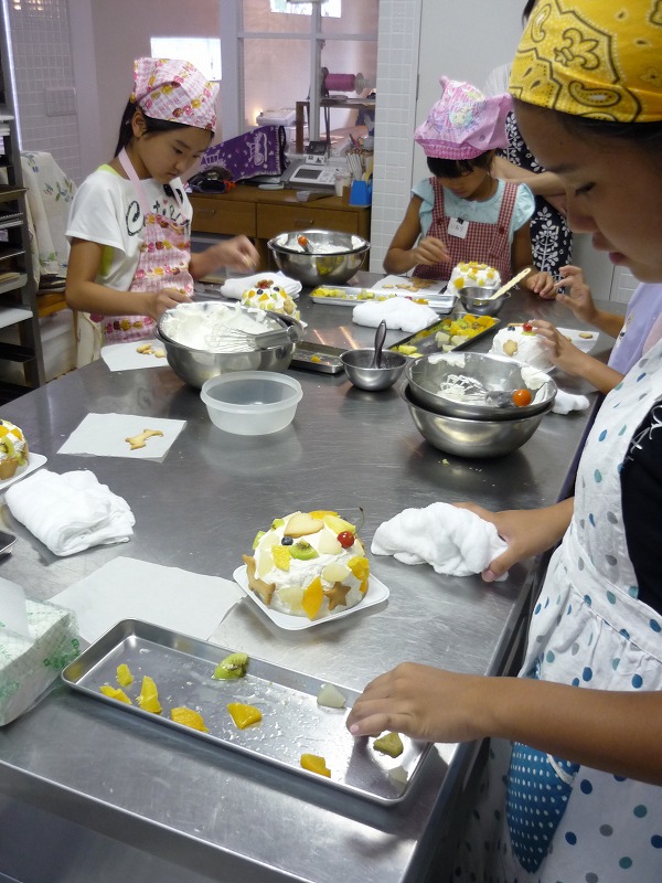 クリームを塗ったり、フルーツを切ったり飾ったりするのが中心のお菓子作りです。